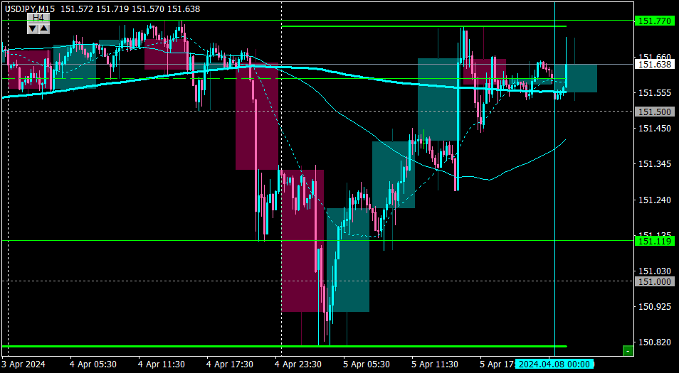 先週の金曜は前日の戻り売りを狙っていたが、急な動きに対応できず。その後151.0で急反発してしまってノートレード。