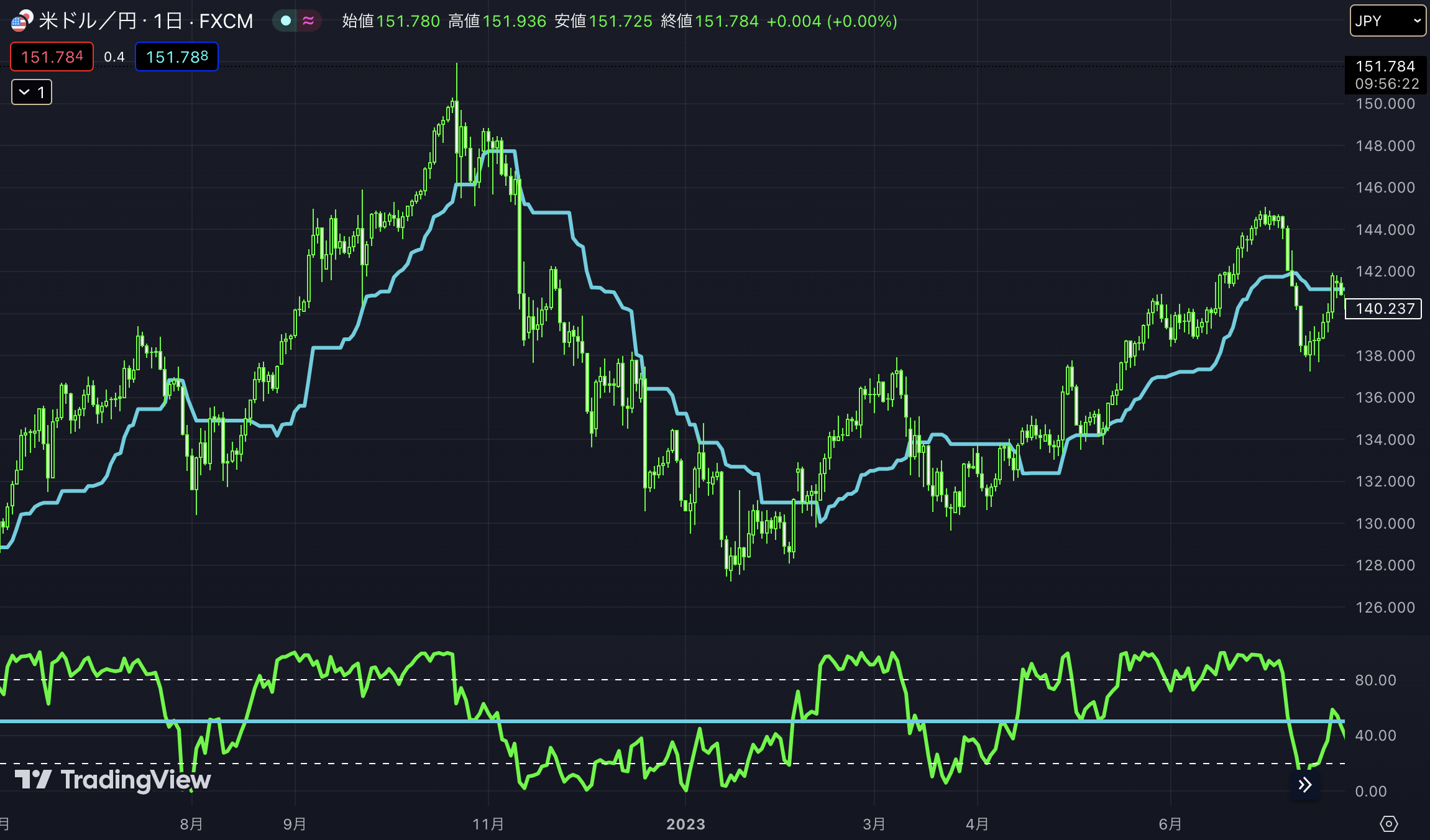 オシレーター系の指標は、相性のいいトレンド系と一緒に表示させて使うことをオススメします。