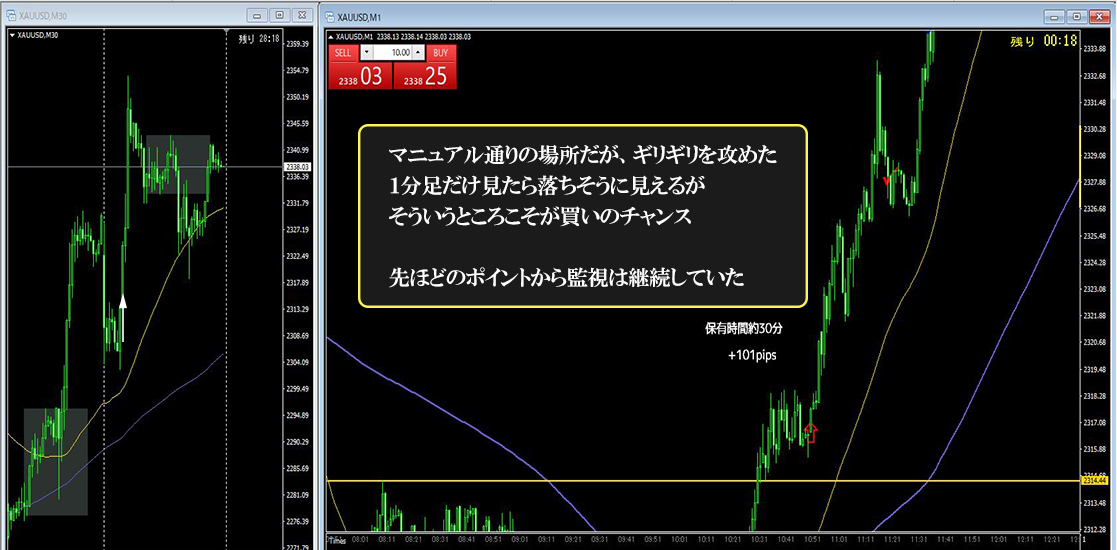 通常通り伸ばしていけそうなところですがあえてスキャルピングで取りました。