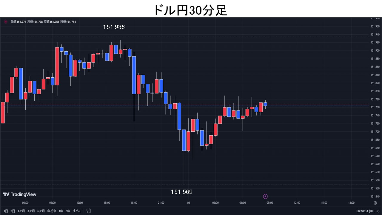 ドル円、米消費者物価指数(CPI)控え151円台後半で小動き。
