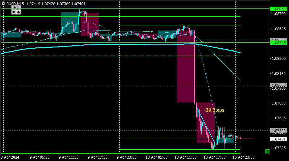 昨日は1.0850の下抜けのタイミングを見計らっていたが、CPIの発表で一気にブレイク。
