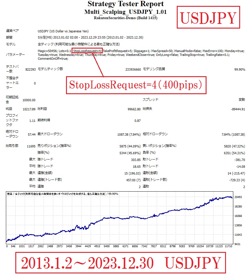 スキャルピングEA「Multi Scalping USDJPY」で検証してみた。