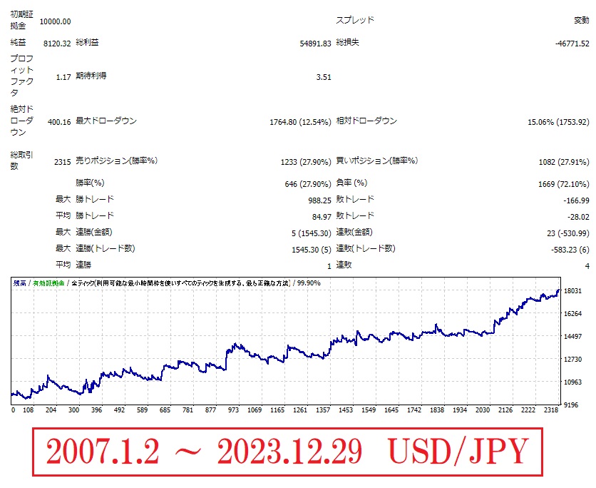 ストップ逆指値を120pipsに設定した場合のバックテスト結果