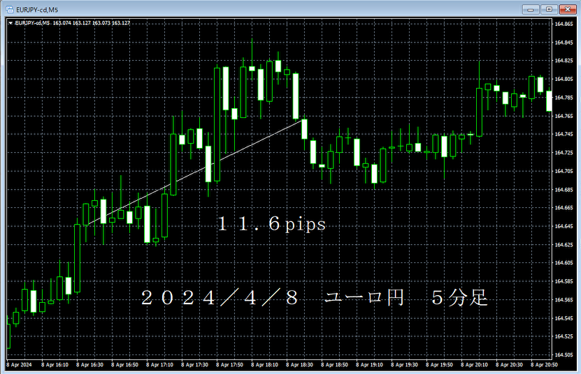 特に1分足や5分足などのスキャルピングではこのレンジブレイクは強力なトレンドを発生させるので特筆です