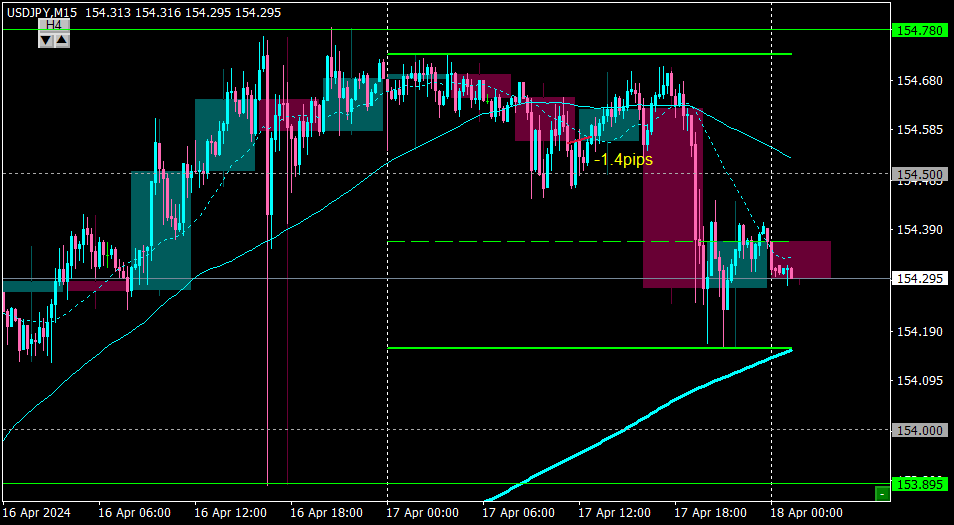 154.50を下抜けることを期待していたが反発したので損切り。-1.4pips