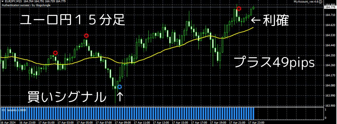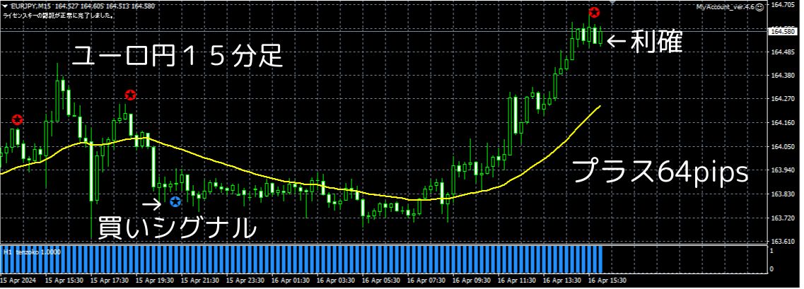 ユーロ円15分足の売買シグナルが好調です!