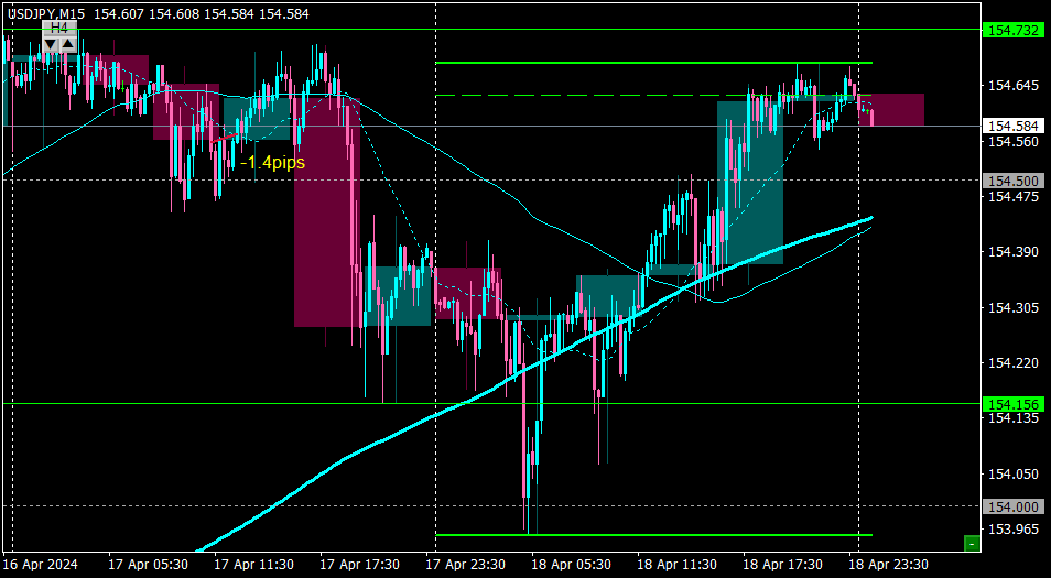 昨日は朝の戦略通り、154.0付近でサポートされて上昇したが、上値までの値幅がそれほど大きくなくすぐに折り返す危険があったのでエントリーせず。