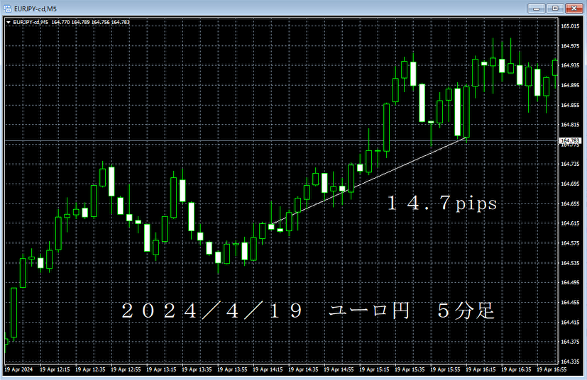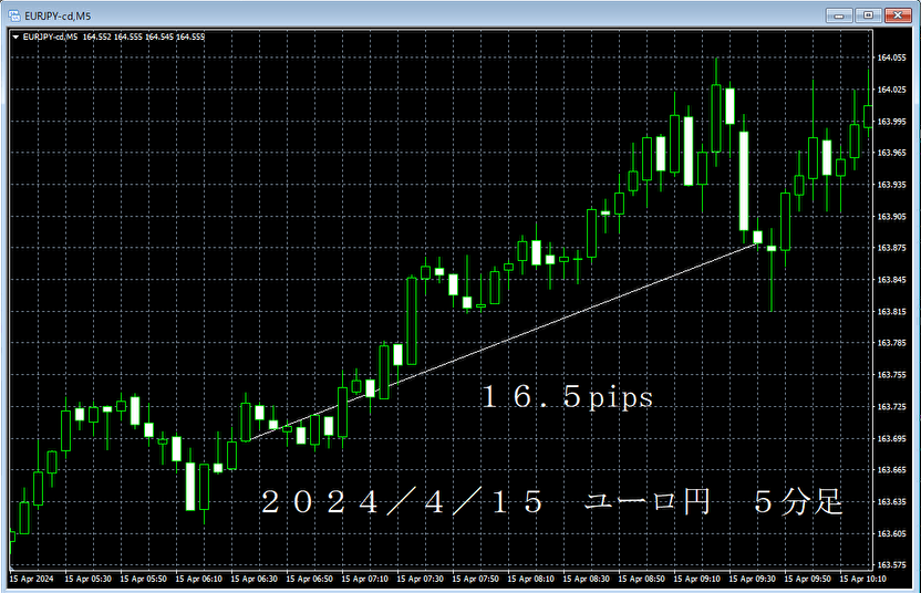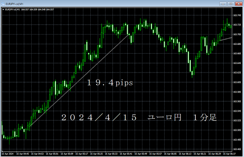 特に1分足や5分足などのスキャルピングではこのレンジブレイクは強力なトレンドを発生させるので特筆です
