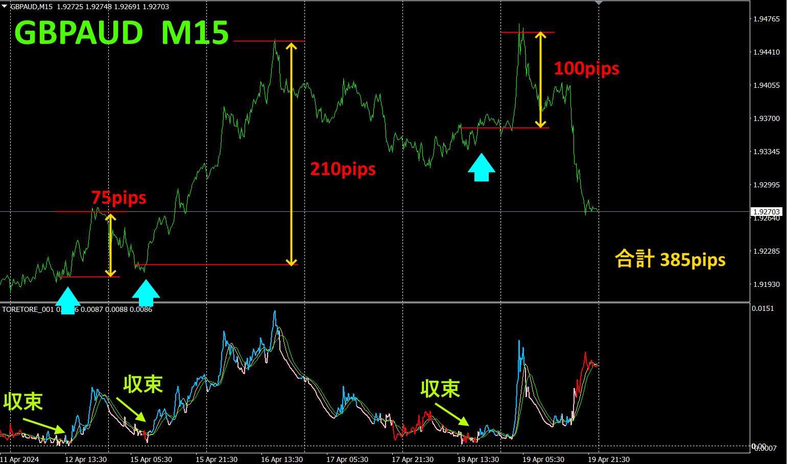 「とれとれインジケータ」を使用したトレード事例(GBPAUD)