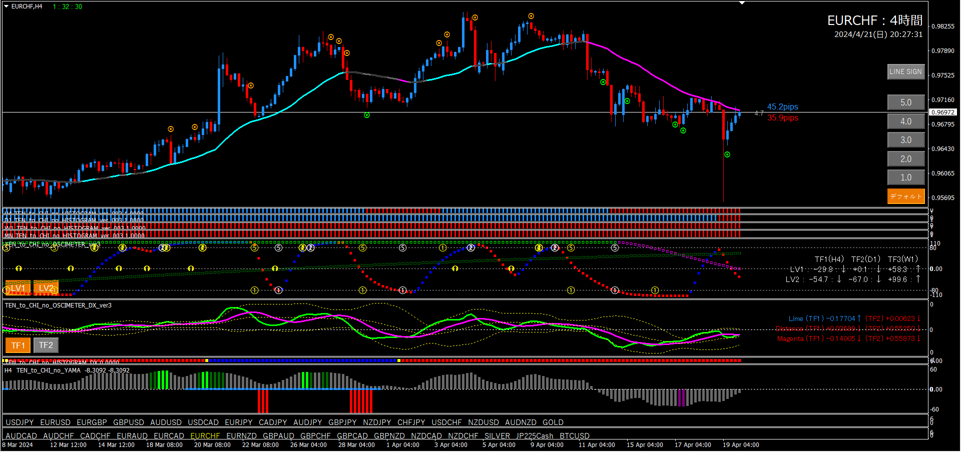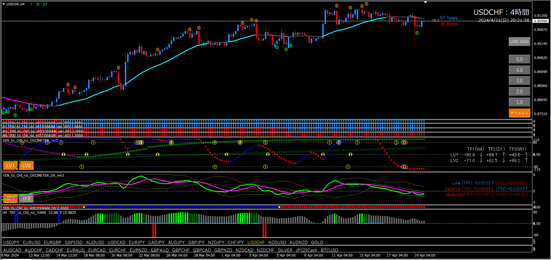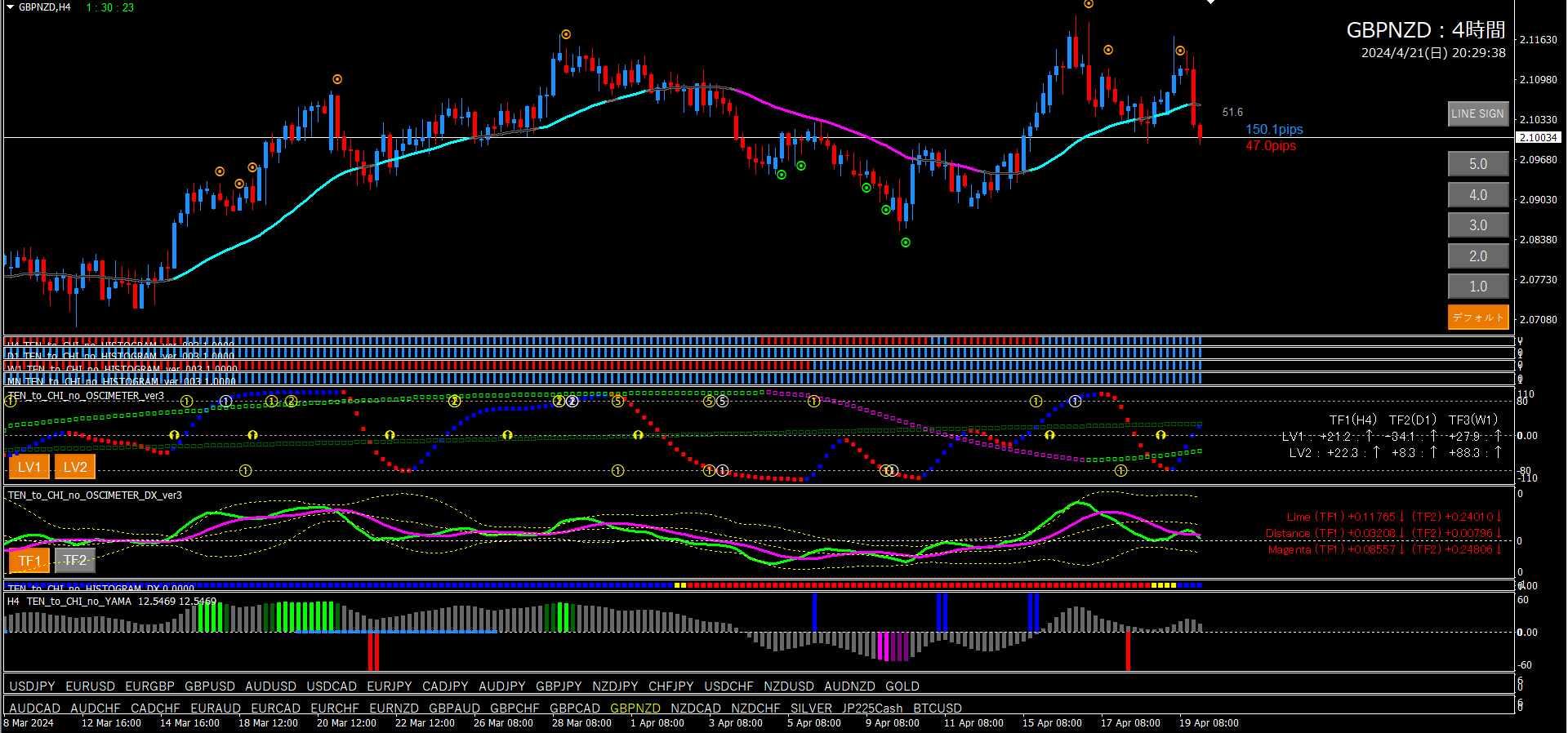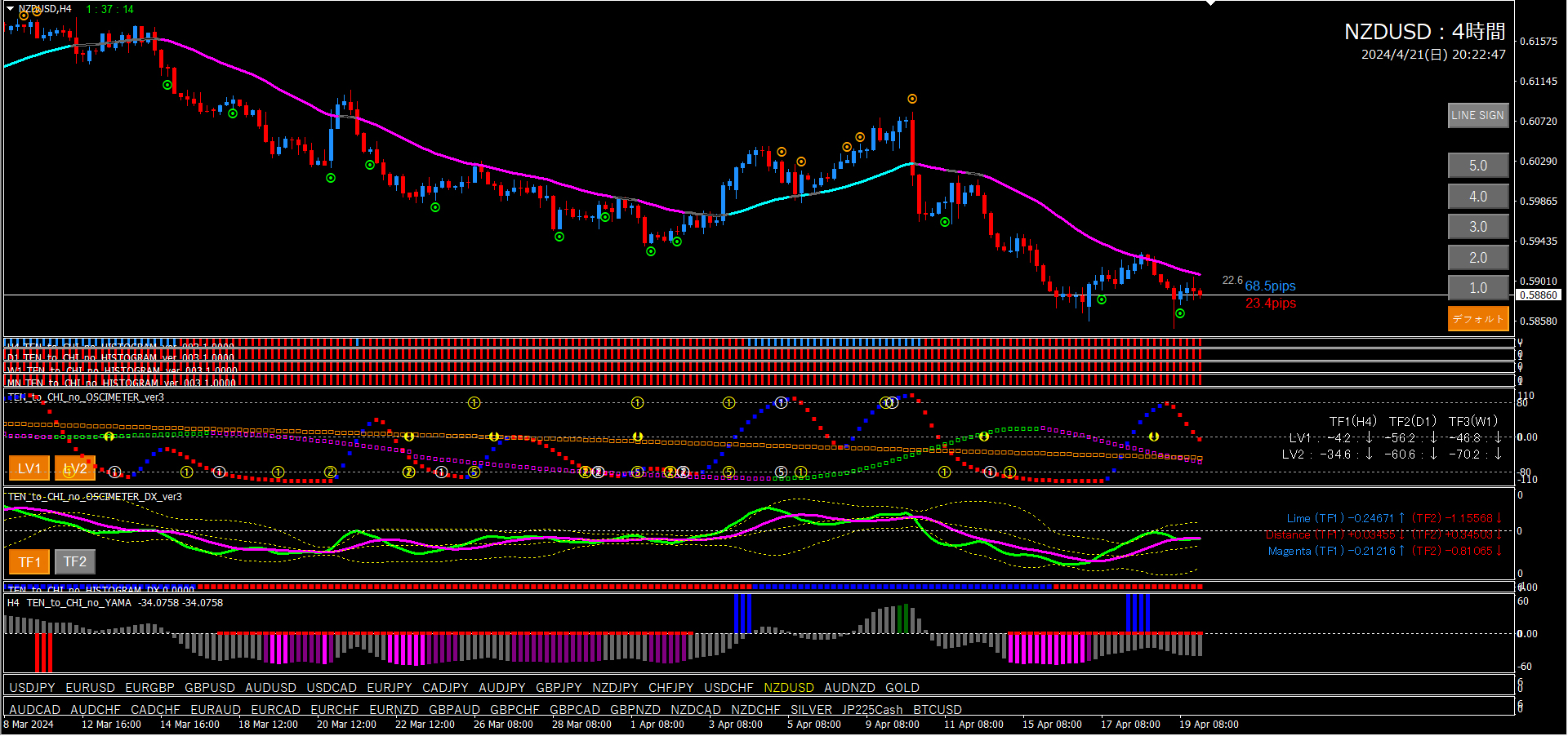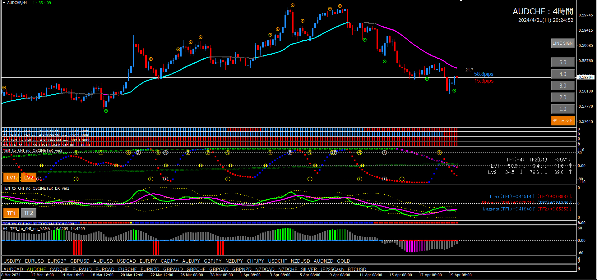 【2024年4月21日】天と地のインジケーターを使用したチャート考察(14通貨ペア)