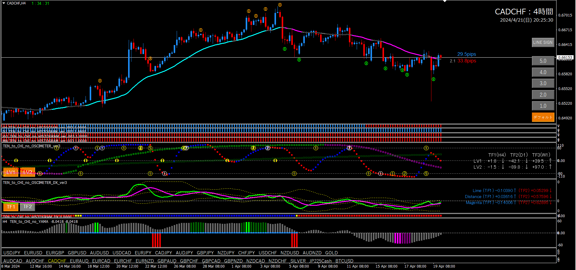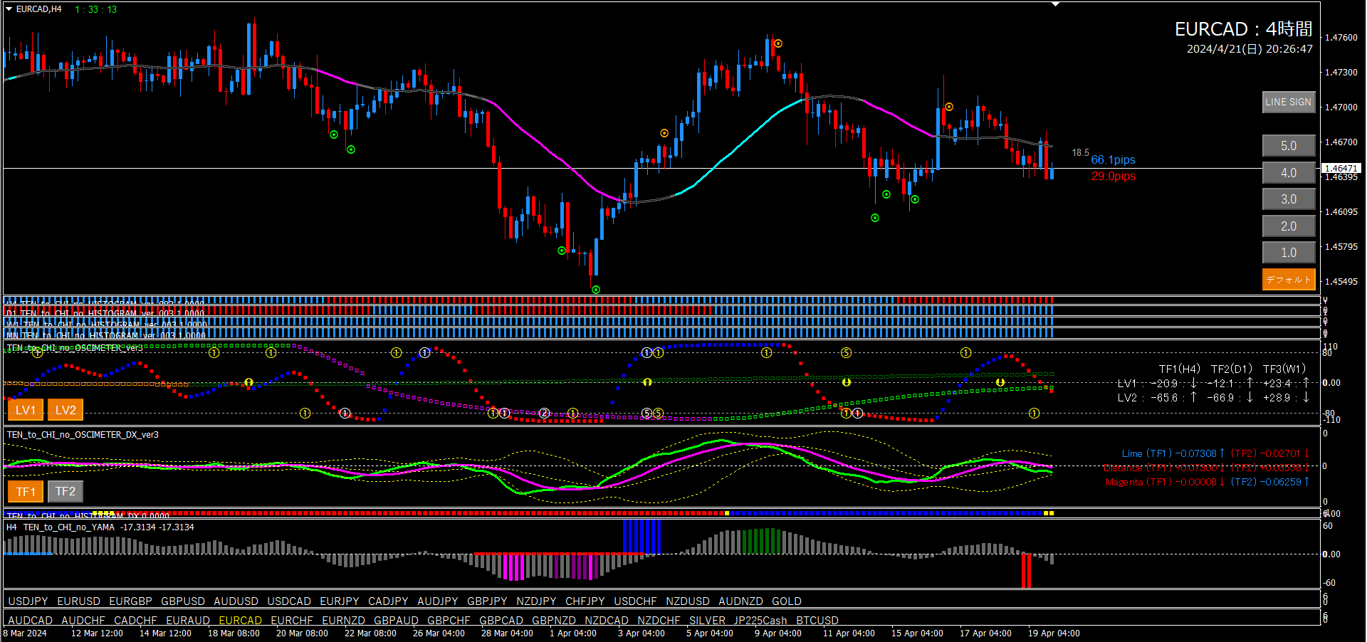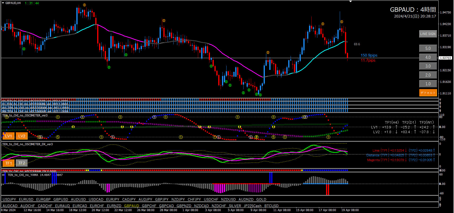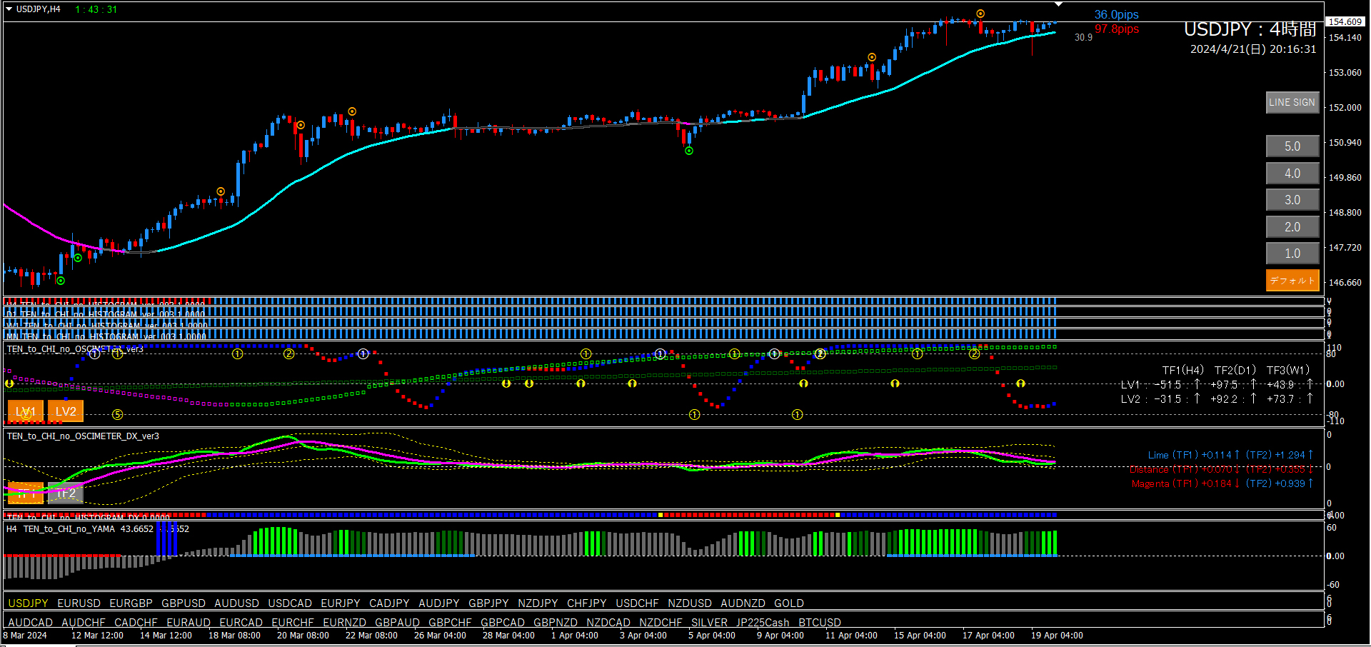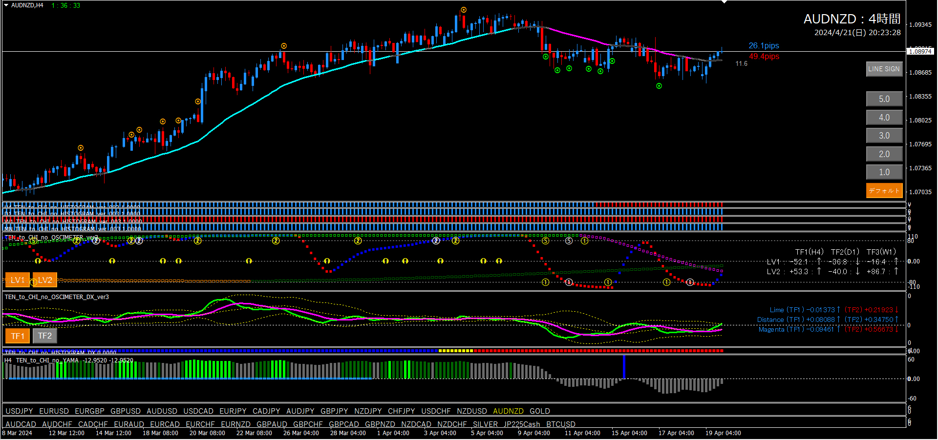 【2024年4月21日】天と地のインジケーターを使用したチャート考察(14通貨ペア)