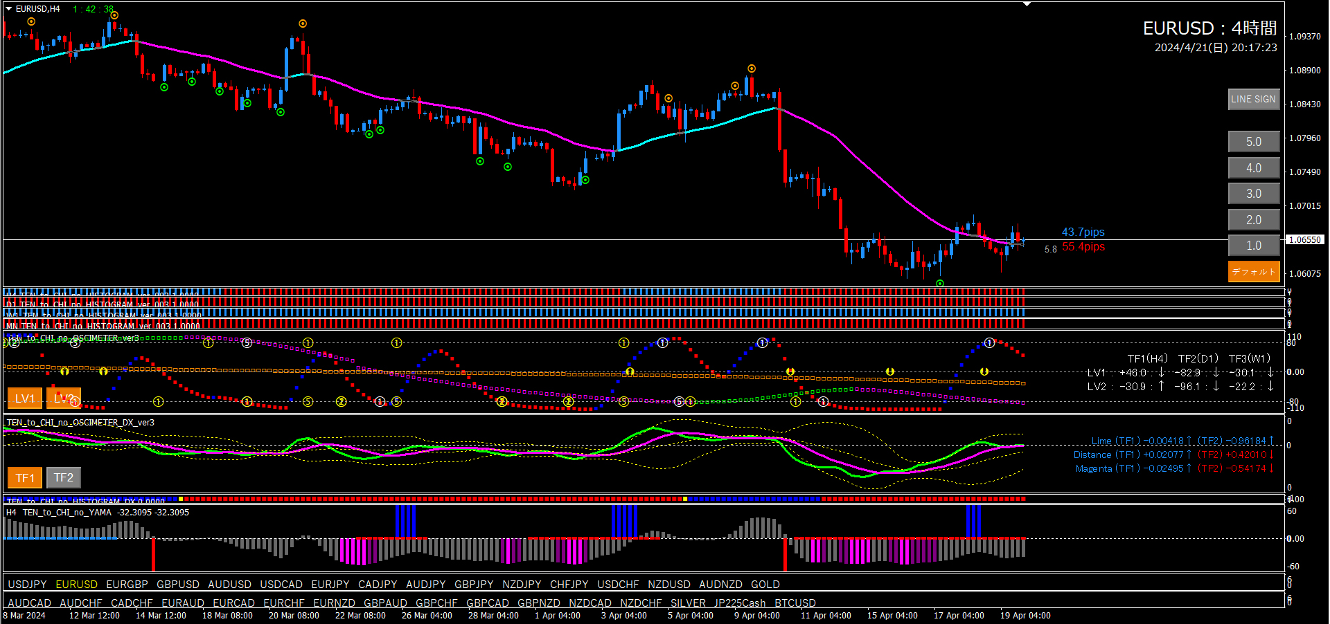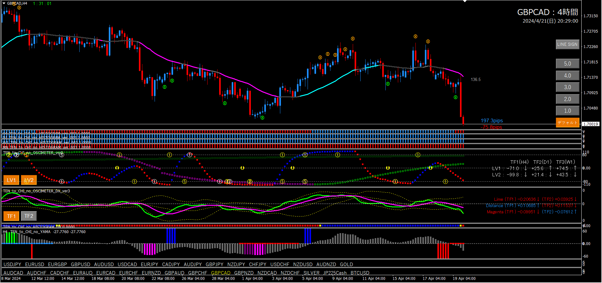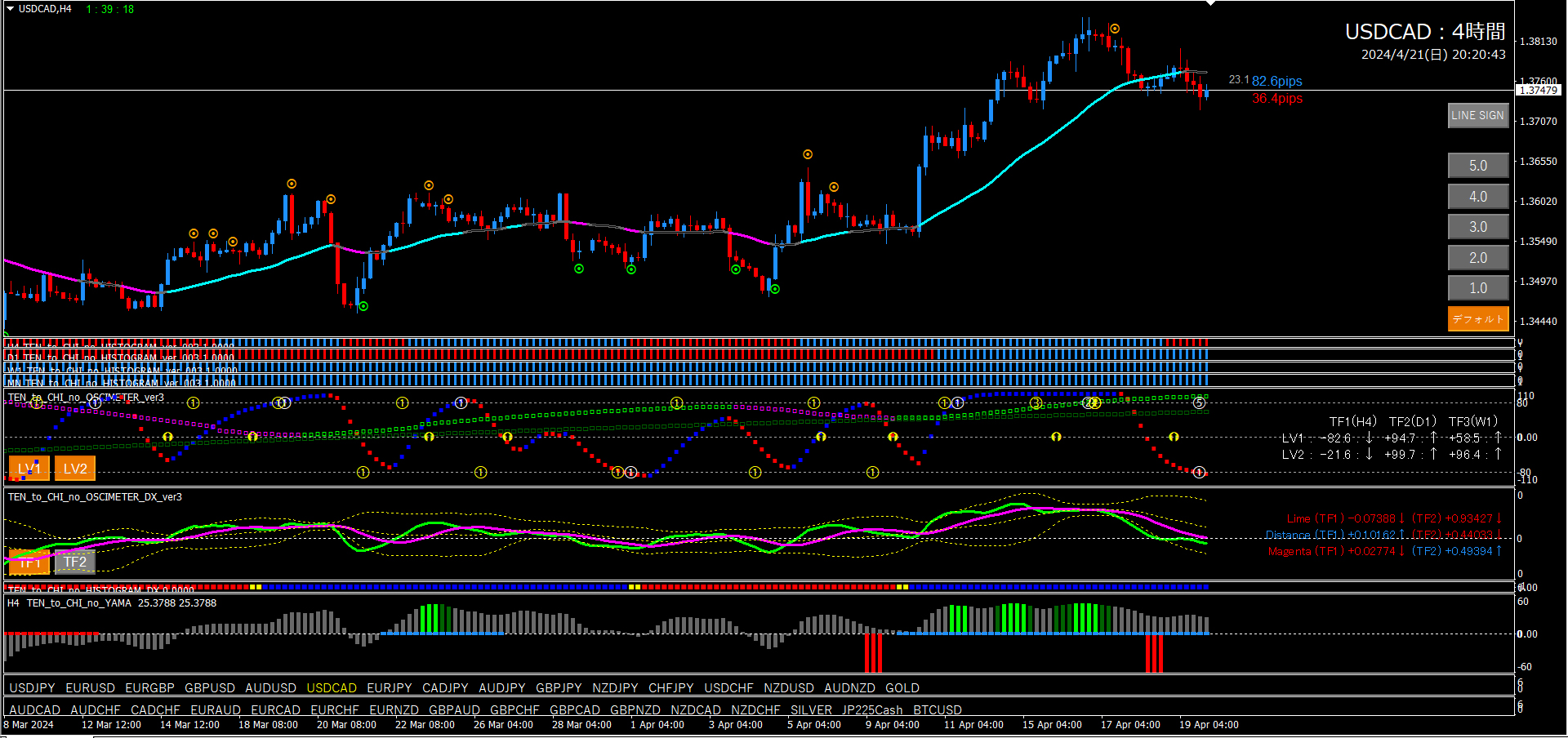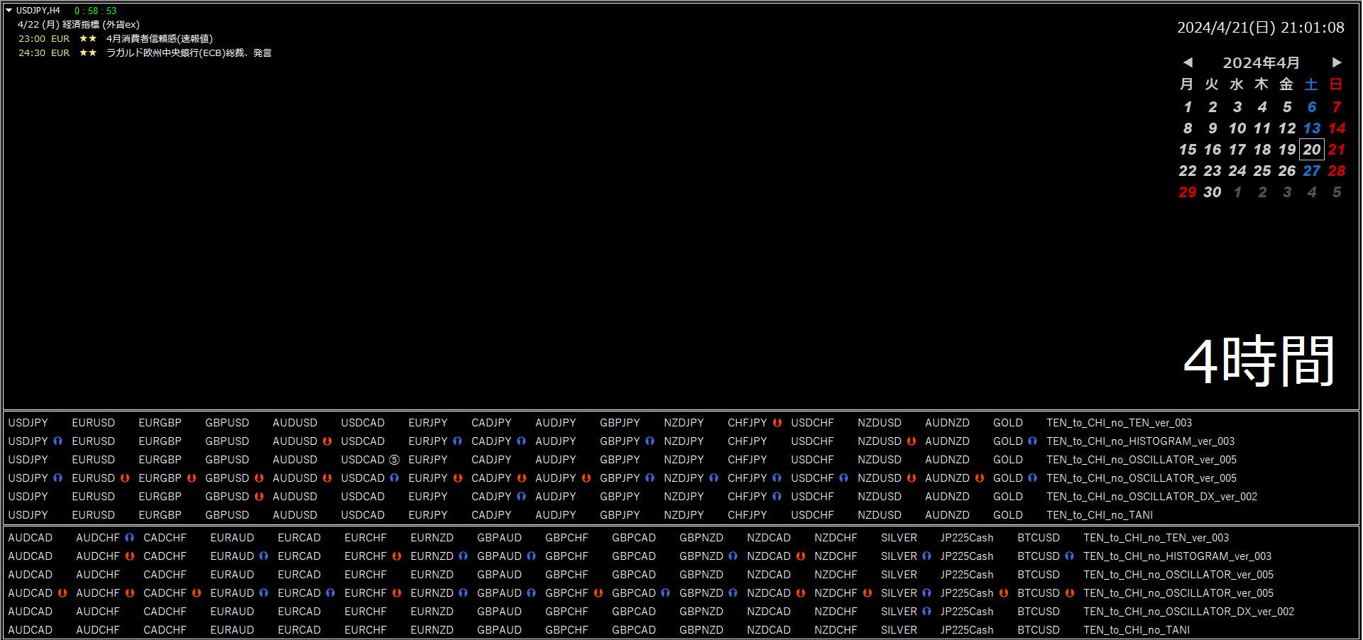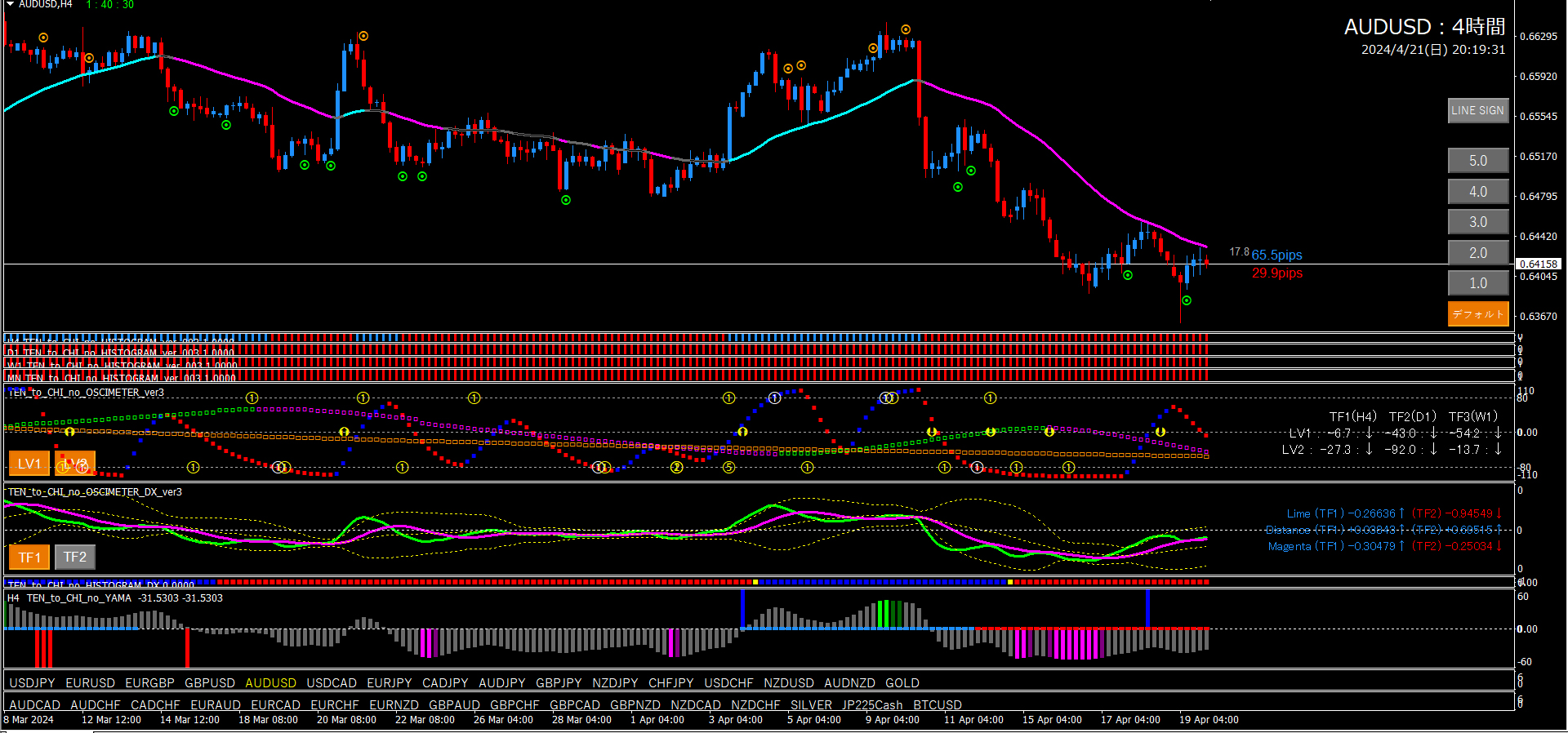 【2024年4月21日】天と地のインジケーターを使用したチャート考察(14通貨ペア)