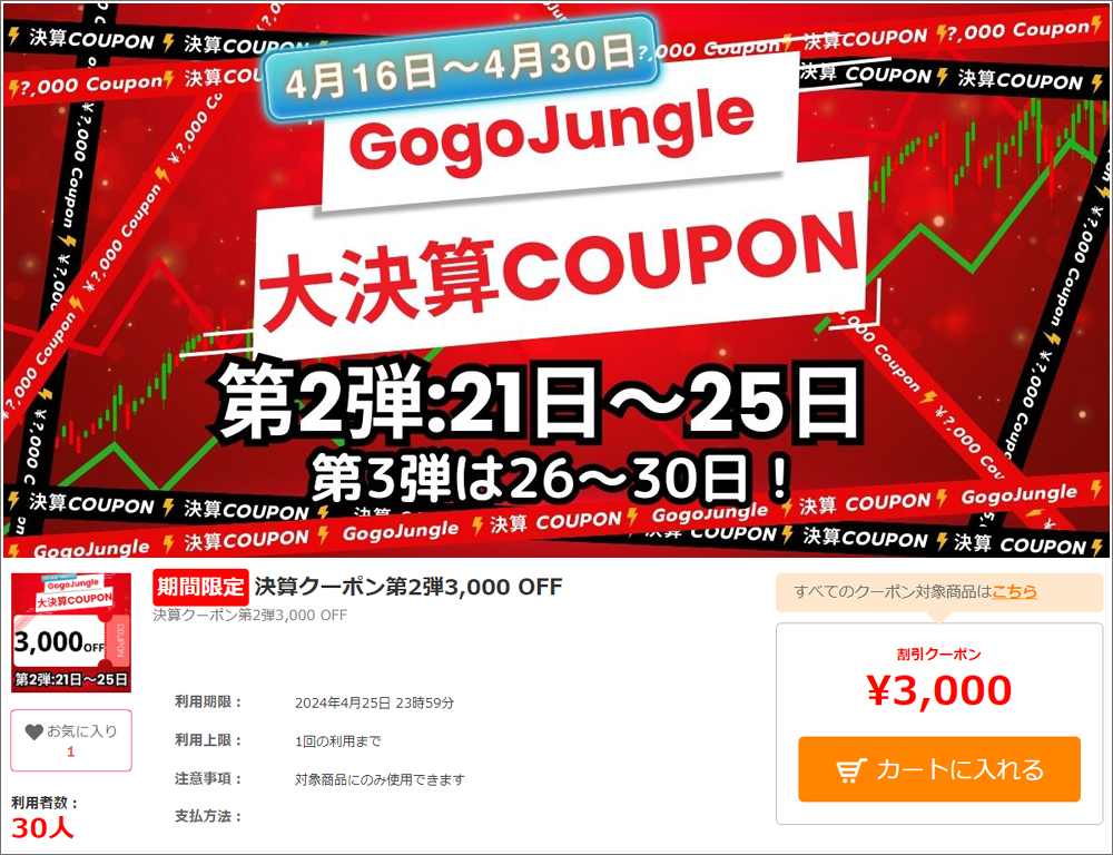 【詳細】https://www.gogojungle.co.jp/coupons/50687