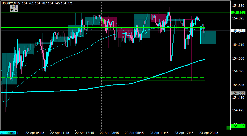 昨日は先週高値154.78付近での揉み合いに終始した。