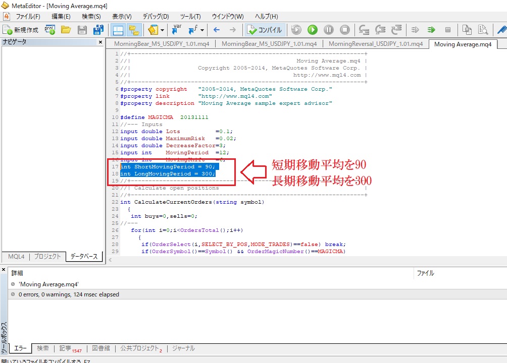 MT4に最初からある「Moving Average.ex4」というEAをMicrosoftが提供するCopilot(コパイロット)を使い、カスタマイズしてみました。