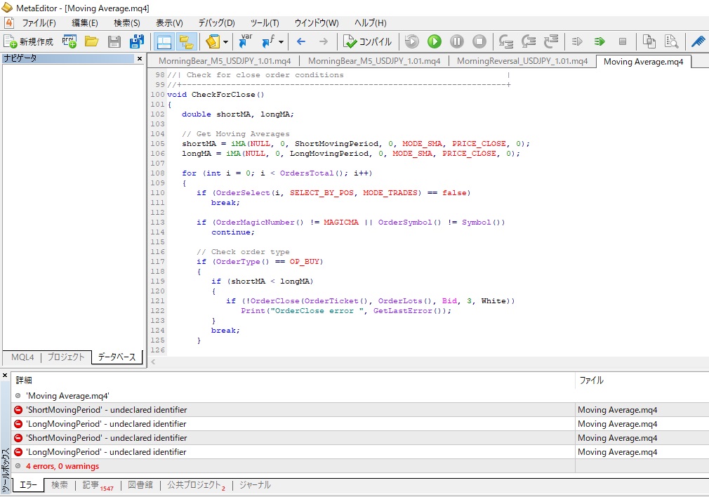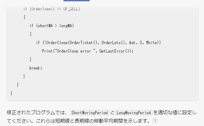 マイナー言語であるMQL4を生成AIが完全にカバーするにはもう少し時間がかかりそうです。