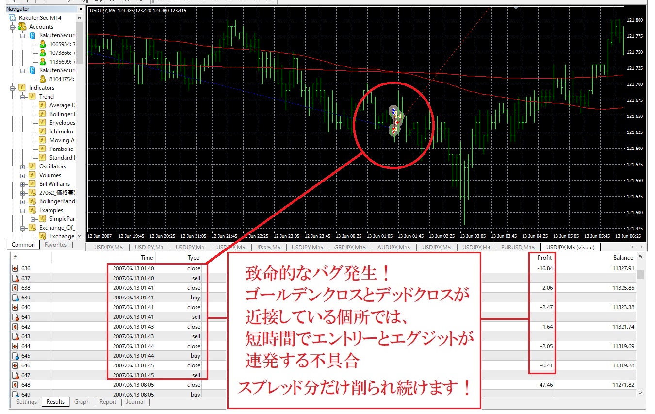 バグだらけのEAをリアル口座で運用すると、エントリーとエグジットの無限ループが発生し口座資金が溶けますのでご注意ください。