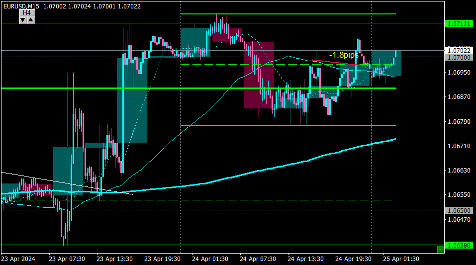 昨日は朝の戦略通り、先週の高値1.0690からの上昇を狙ってロングエントリーしたが、買いの強さはそれほどでもなく損切り。-1.8pips