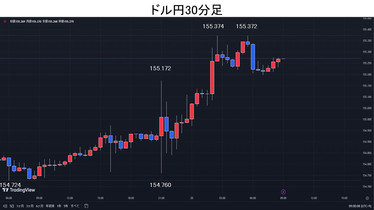 ドル円、日米金融政策差を背景に155.37円と34年ぶりの高値更新。