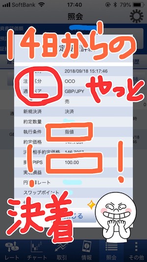 → 利食いは100pips、損切りは90pipsでOCOでセット