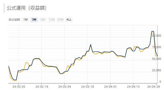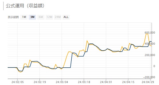 4月29日 午前10:30頃、ドル円が160円台に突入した時点では含み益が10万円(1,000pips)以上あったのですが、