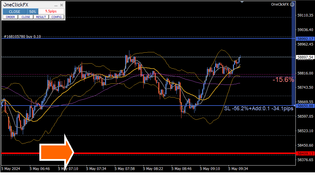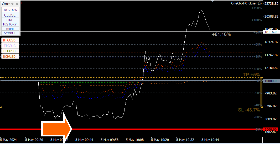 ワンクリックFX MAX: このツールは、強制ロスカットラインをチャート上に太い赤線で表示する機能を提供します。これにより、トレーダーは自分のリスクレベルを一目で確認でき、強制ロスカットのリスクに対する認識を高めることができます。