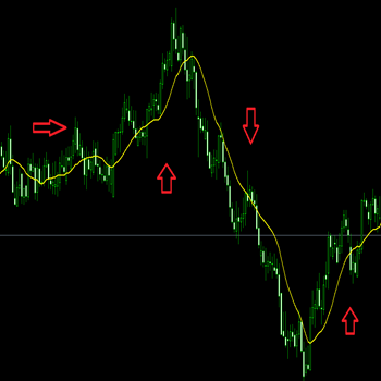 ・ローソク足が移動平均線を上に抜けたら買って、下に抜けたら決済