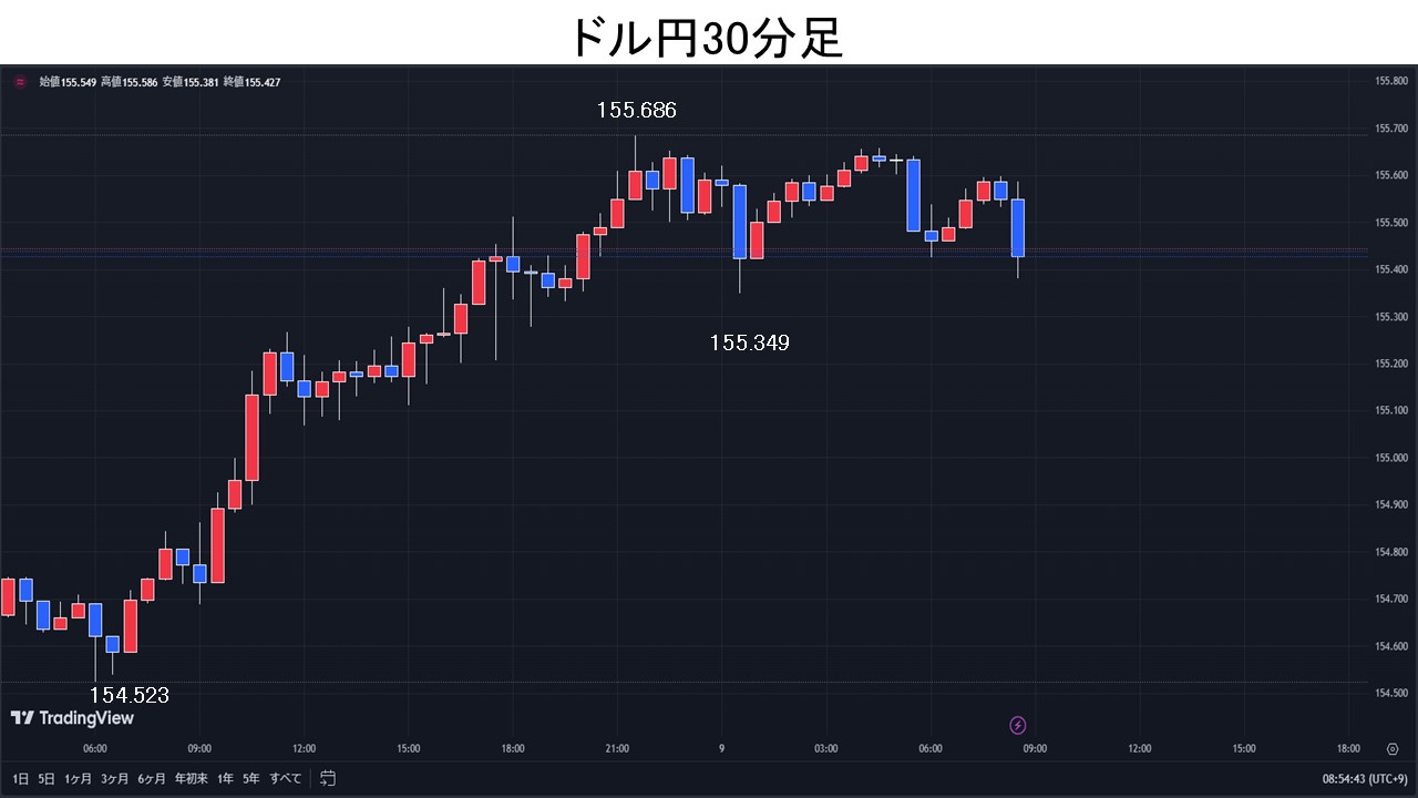 東京時間、ドル円は仲値で本邦実需の買い観測などで155.27円まで上昇。鈴木財務相から円安けん制発言が出たが、マーケットの反応は限定的。欧州時間、植田日銀総裁が「急速かつ一方的な円安は日本経済にマイナスであまり望ましくない」「為替はファンダメンタルズに沿った推移が重要」などと発言すると、ドル円は下押しとなるが、マーケットの反応は一時的だった。NY時間、米10年債利回りが上昇すると日米金利差が意識され、ドル円は155.68円まで上昇。また、コリンズ米ボストン連銀総裁は講演で、「インフレ率を目標の2%に戻すには米経済活動の減速が必要」「利下げを早期に実施することにはリスクがある」などと発言した事もドル円の下支えとなった。