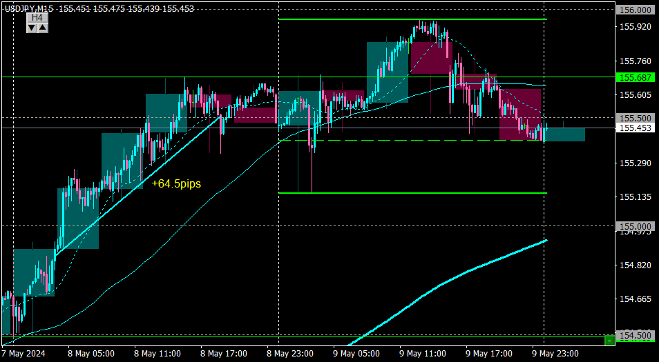 ただすぐ上の156.0は長期下降波の戻り売り水準だったのでエントリーはせず。