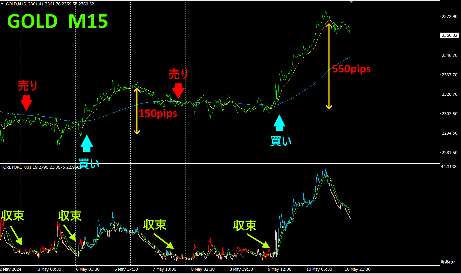 「とれとれインジケータ」を使用したトレード事例(GOLD)