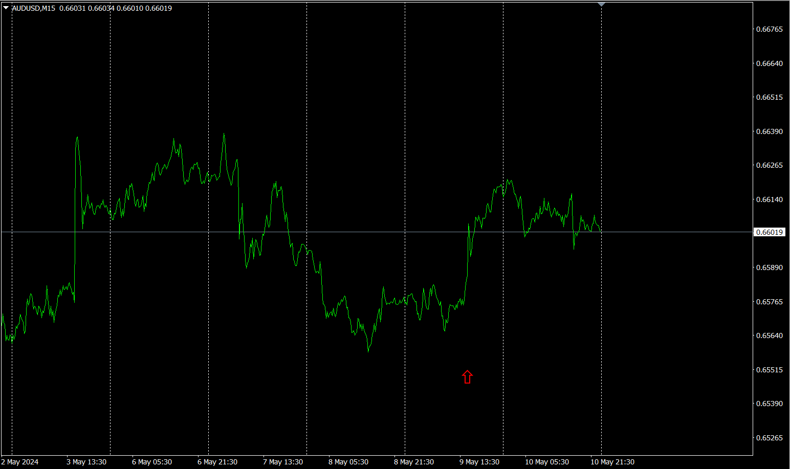 赤色の矢印がスクリーンショットを撮影した所です。しっかりと急騰しています。直近高値を超えてから、買いトレードをしたと仮定して約40pipsの利益が得られました。