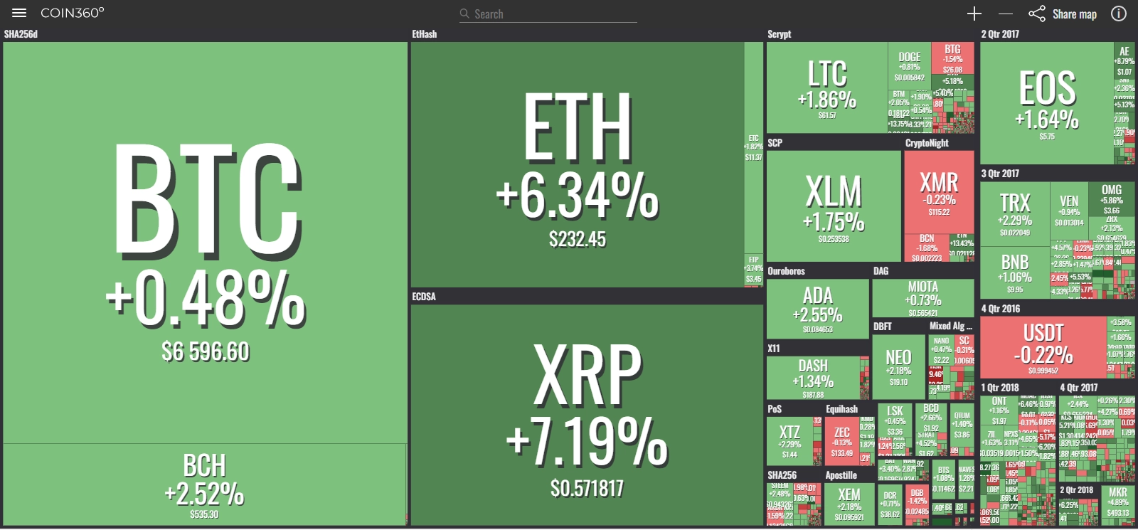 coinmarketcap(コインマーケットキャップ)のサイトから、ドミナンス(各銘柄が仮想通貨全体の時価総額に占めるパーセンテージ)を定点観測していきます。仮想通貨全般が下方向に大きく動き出している相場状況を受け、毎日更新することとし、仮想通貨業界を俯瞰および転換期を早期に発見することを目的とします。