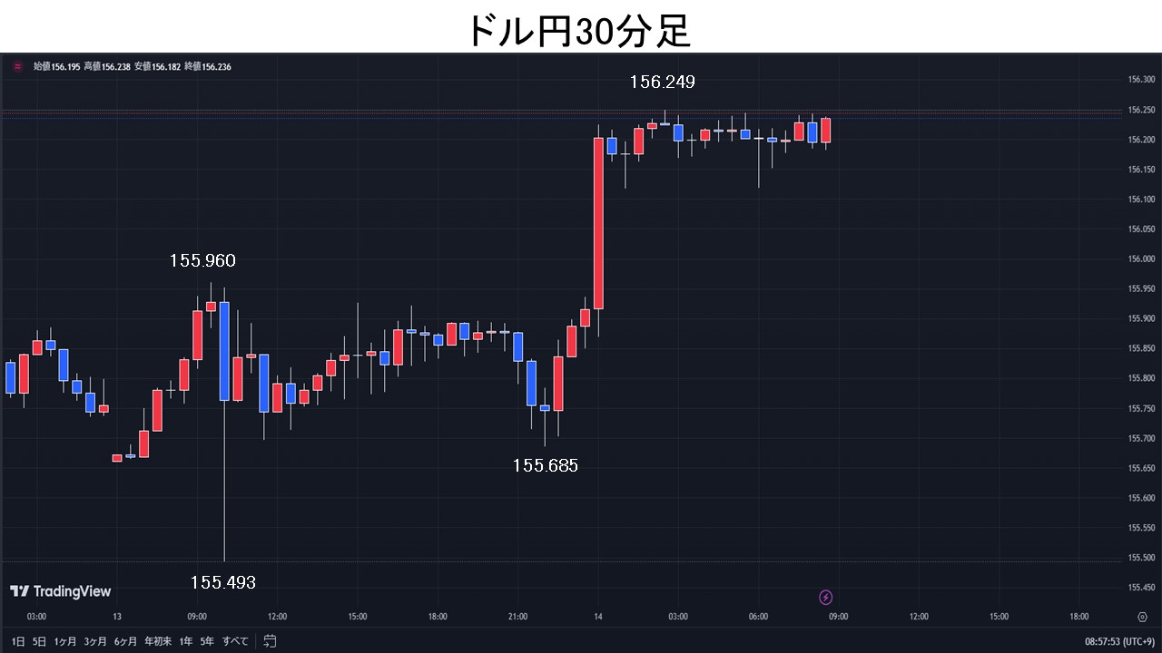 米国から改めての介入けん制発言で、ドル円156円台へ。