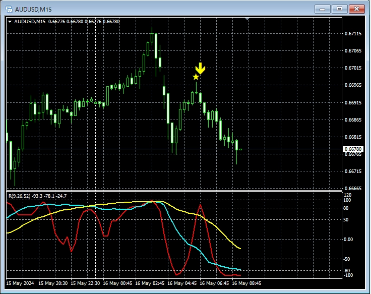 チャートは省略するが、日足と4時間足ではRCI3本ラインがそろって上昇のとても強い形をしている。