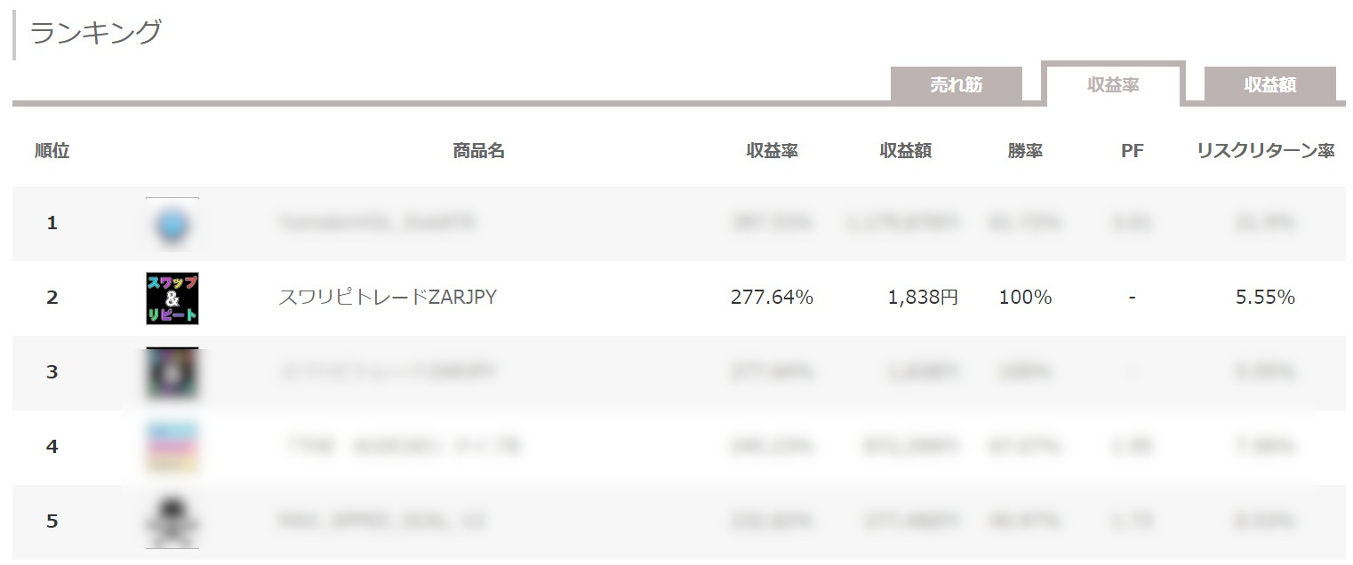 私の開発したEAのスワリピシリーズ、特に南アランド(ZARJPY)が非常に好調で、ついに収益率ランキングで2位にまで上り詰めることが出来ました。