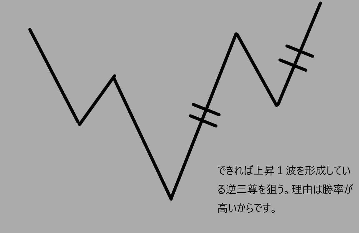 今回の逆三尊よりも行きやすく教科書的かと思います。
