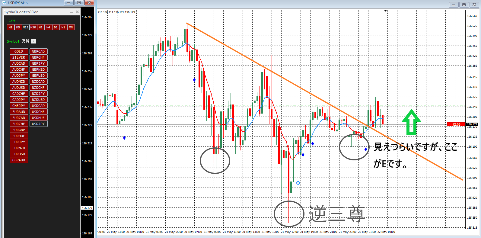 15分足を使ったトレードで、下記がエントリーポイントです。
