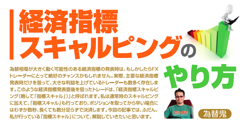 為替や金融の世界では、ほとんど毎日なんらかの経済指標が発表され、これが為替相場を動かすひとつの要因となっています。この経済指標発表直後の値動きに集中して、超短期のトレーディングを仕掛けるのが指標スキャルといわれるものです。