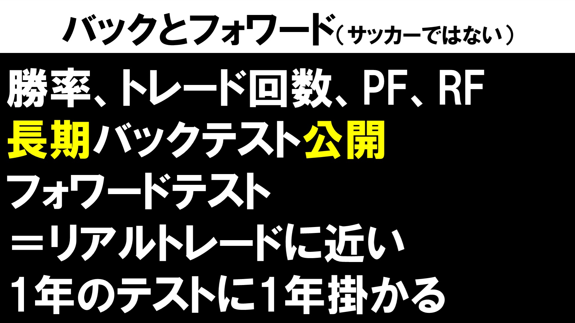 バックテストもフォワードテストも期間が長い程信憑性があると言えますが、フォワードの場合結果を知るためには何年も待たなければなりません。