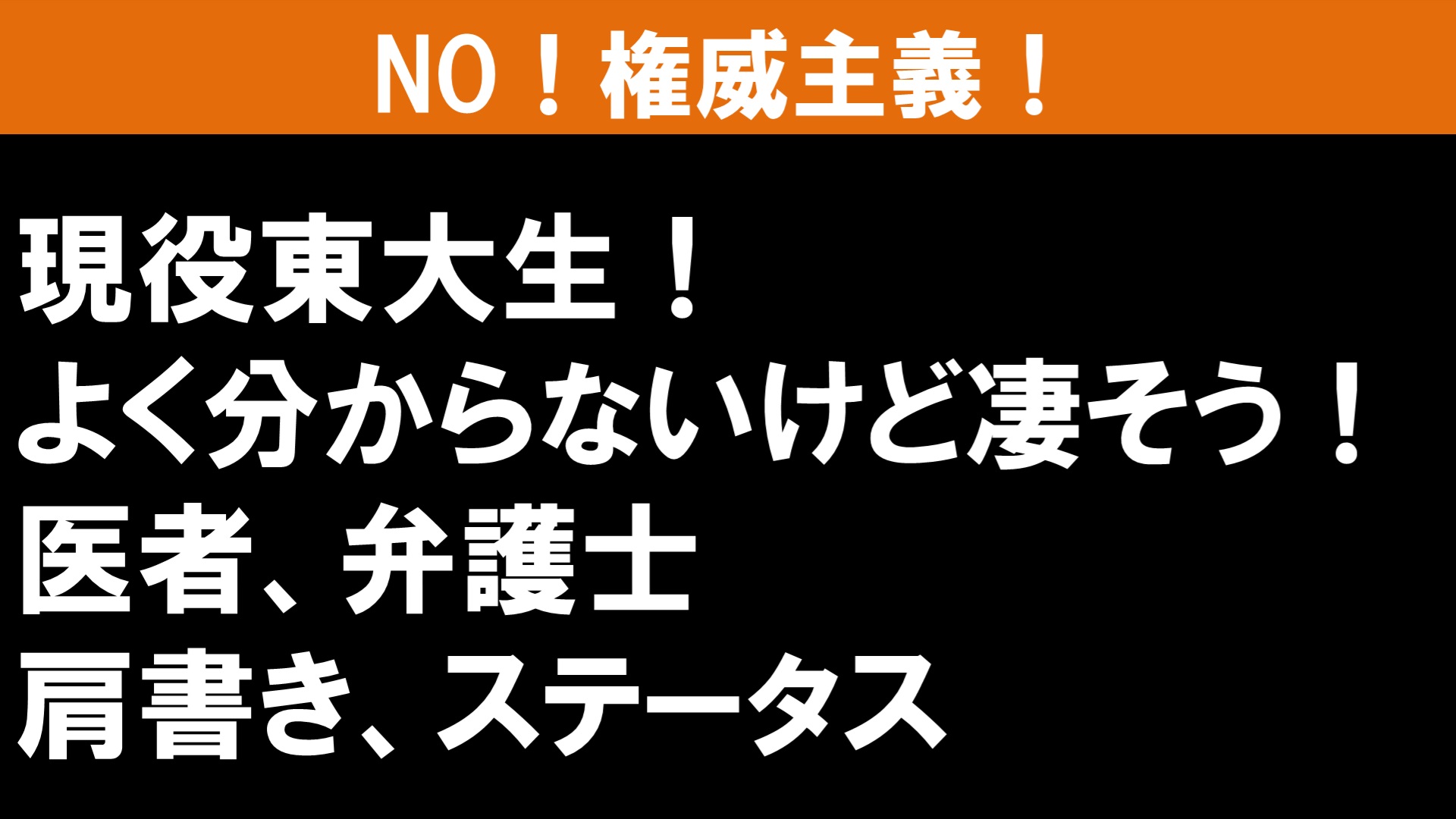 くれぐれも「とにかく現役東大生が考えたロジックだから凄いんだよ!おまいらは偏差値の高い俺様にただ従ってればいいんだ!」のような『よく分からないけど凄そう!』なEAに手を出さないよう注意しましょう。医者だからエライ、弁護士だからスゴイ…のような権威主義になってはダメです。