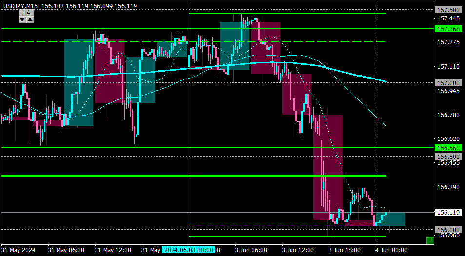 昨日は前日高値を若干ブレイクしたが、朝の解説通り、すぐ上の157.50には強いレジスタンスがあるのでエントリーはせず。