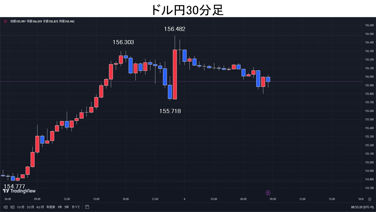 東京時間、ドル円は、5・10(ゴトー日)による本邦実需のドル買い観測などで、155.79円まで上昇。欧州時間、ドル円は、時間外の米10年債利回りの上昇や、新NISA関連のドル買い観測などで156.18円まで上昇。NY時間、5月ADP雇用統計で非農業部門雇用者数が15.2万人増と予想の17.5万人増を下振れると、ドル円は一時155.71円で下押し。その後、5月米ISM非製造業景況指数が53.8と予想の50.8を上振れると、一転買い戻しが先行し、ドル円は156.48円まで上昇。