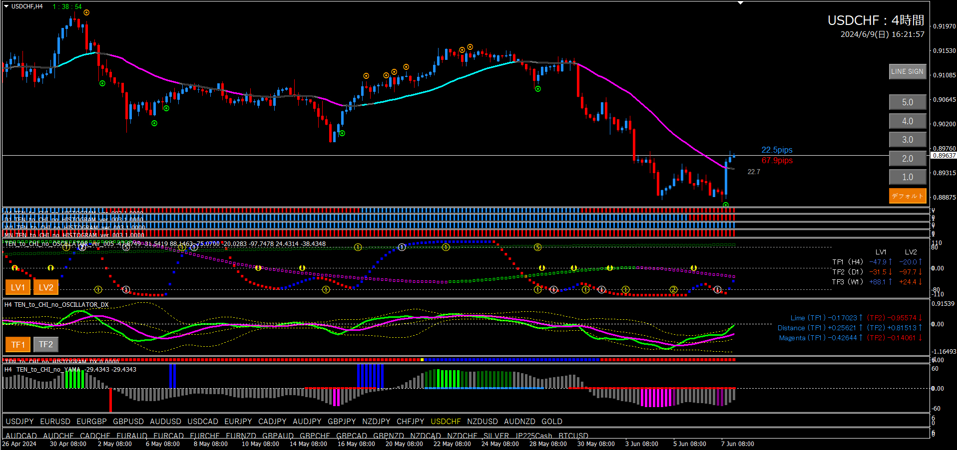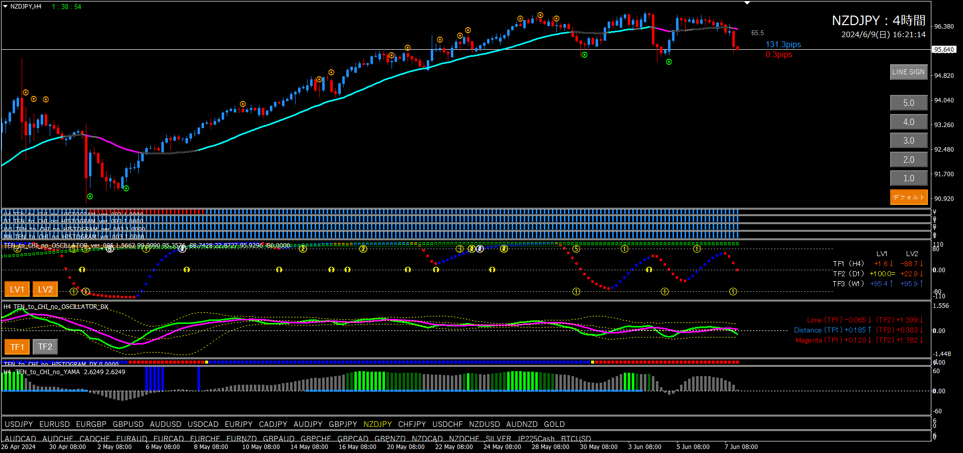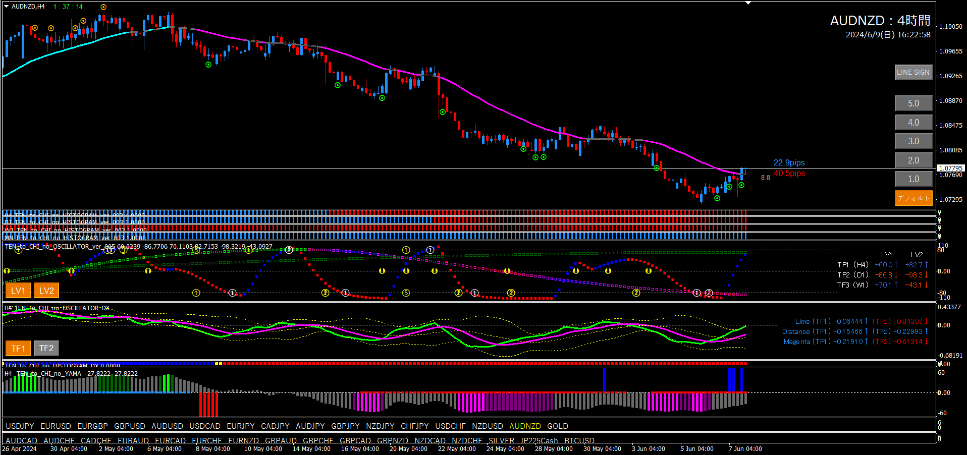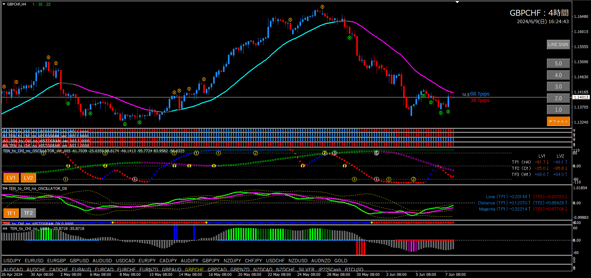 【2024年6月9日】天と地のインジケーターを使用したチャート考察(15通貨ペア)