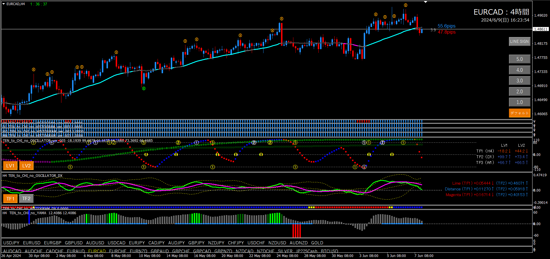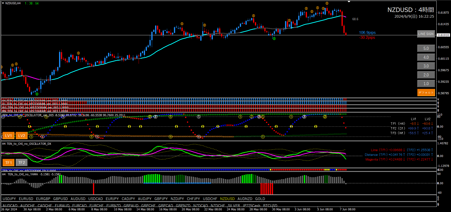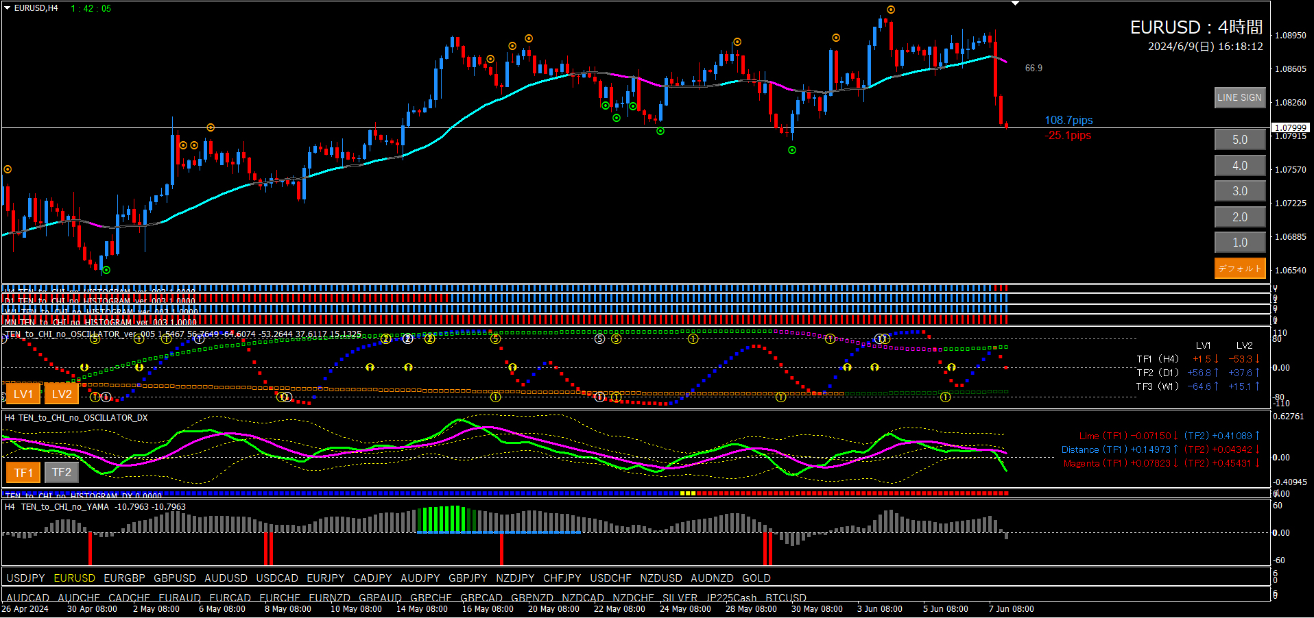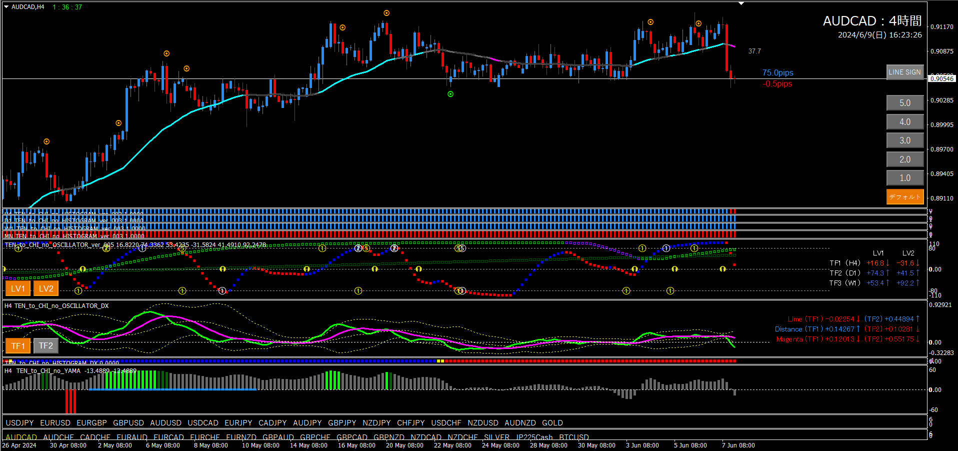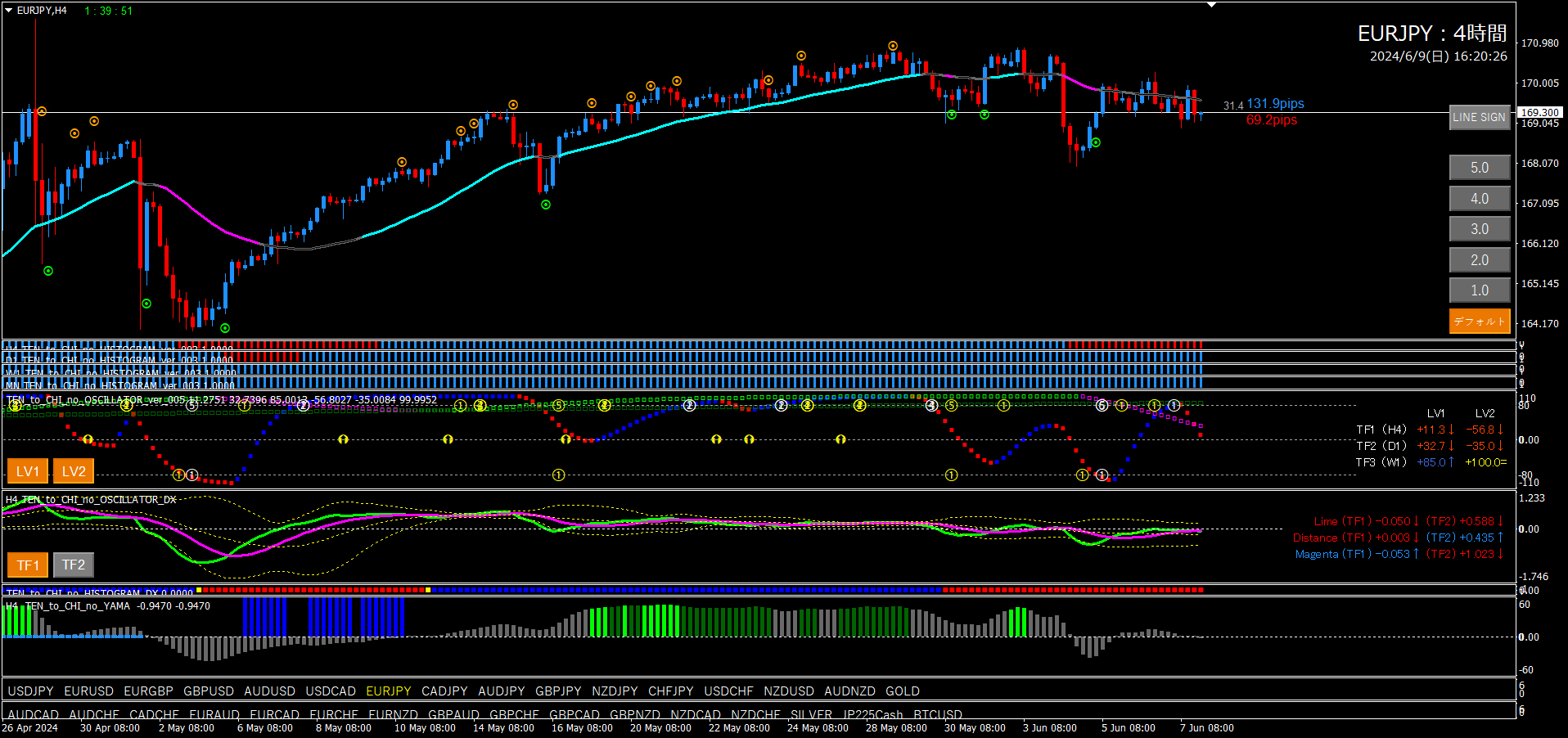 【2024年6月9日】天と地のインジケーターを使用したチャート考察(15通貨ペア)