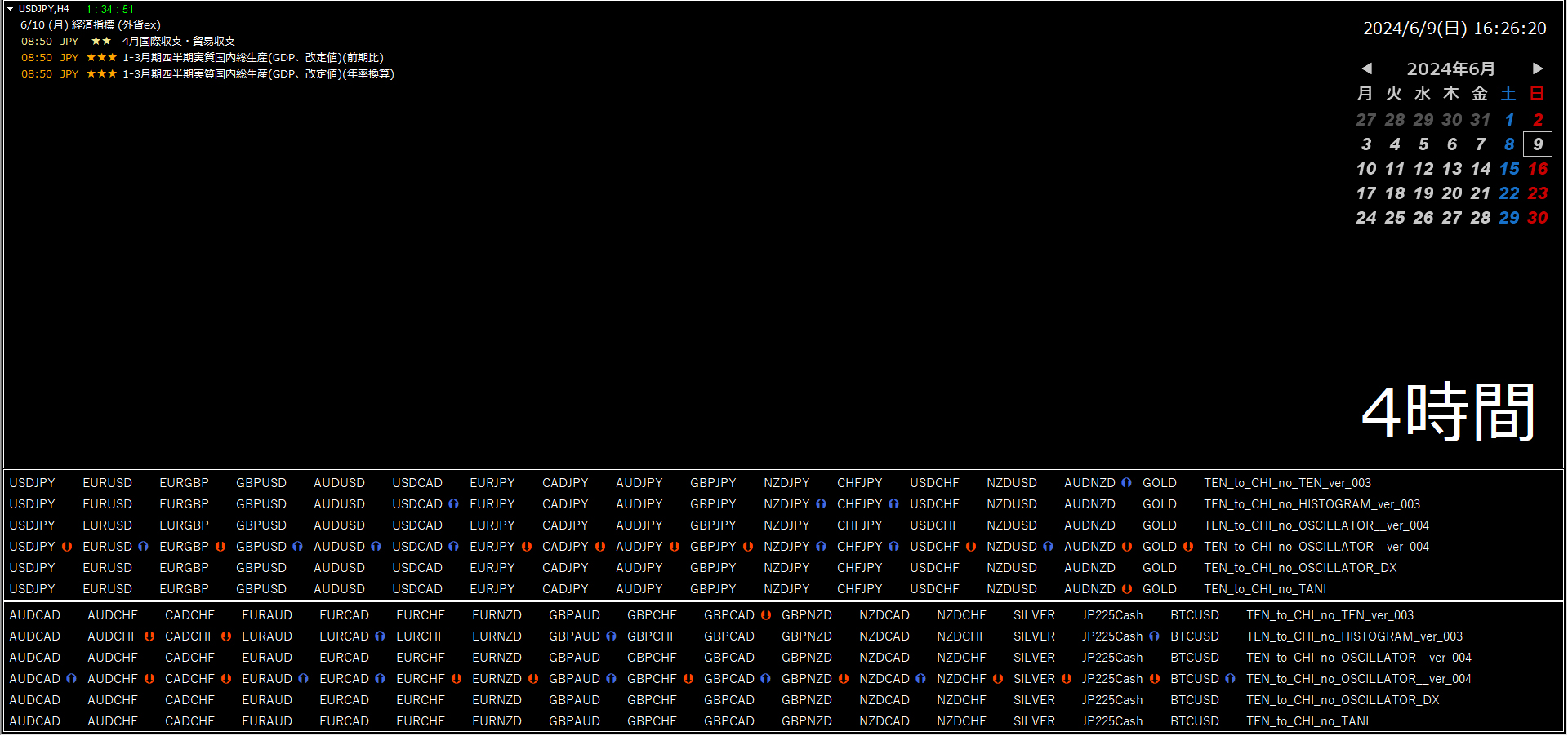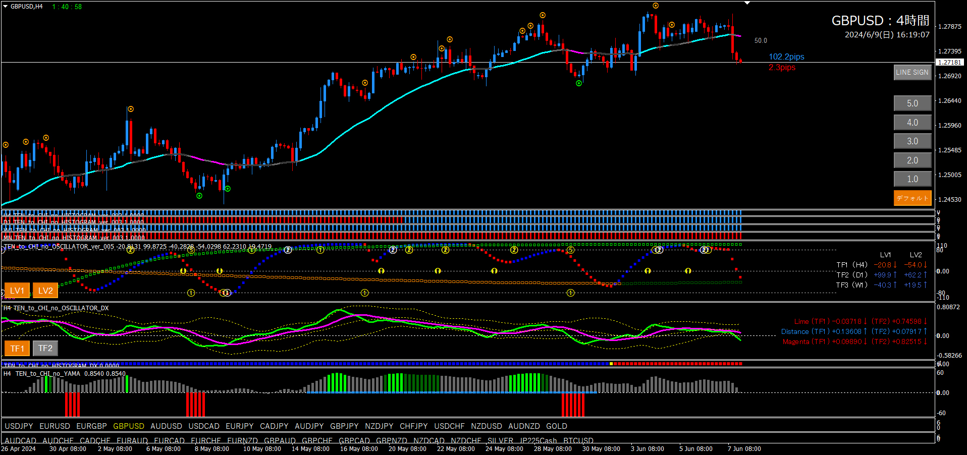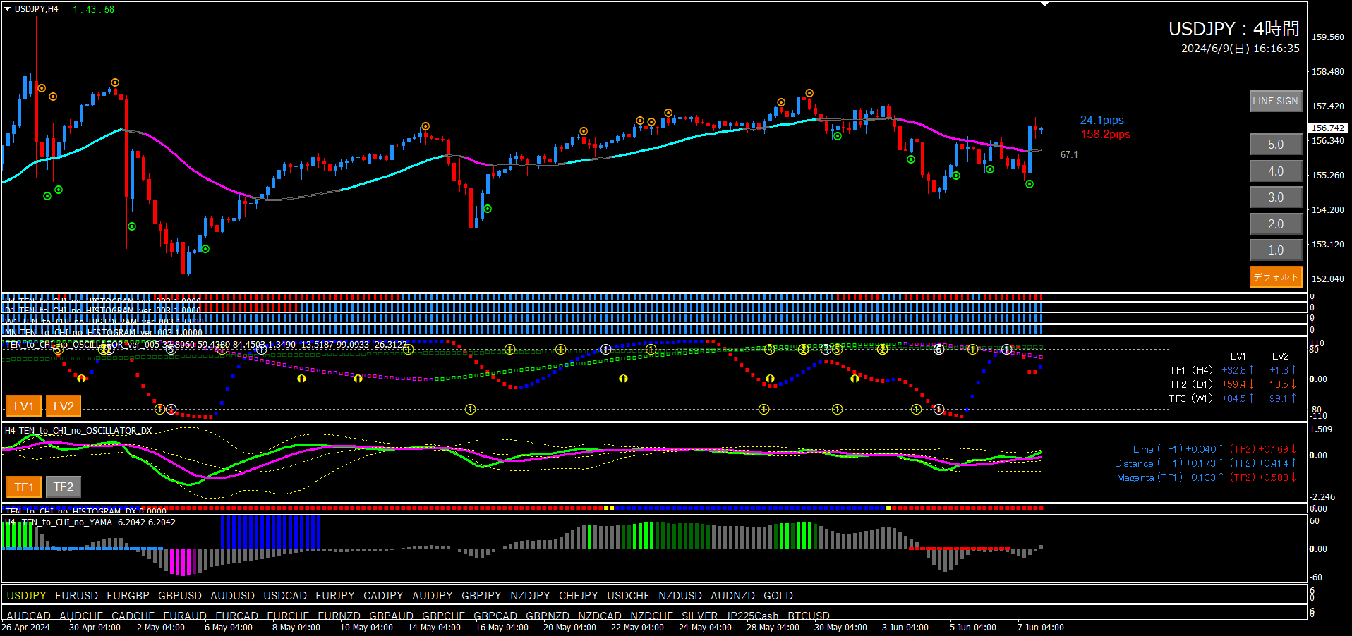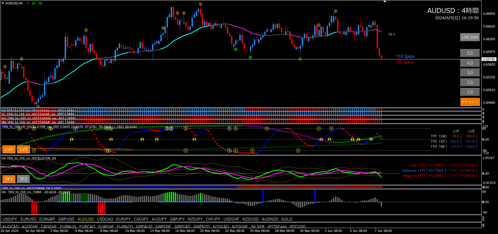 【2024年6月9日】天と地のインジケーターを使用したチャート考察(15通貨ペア)