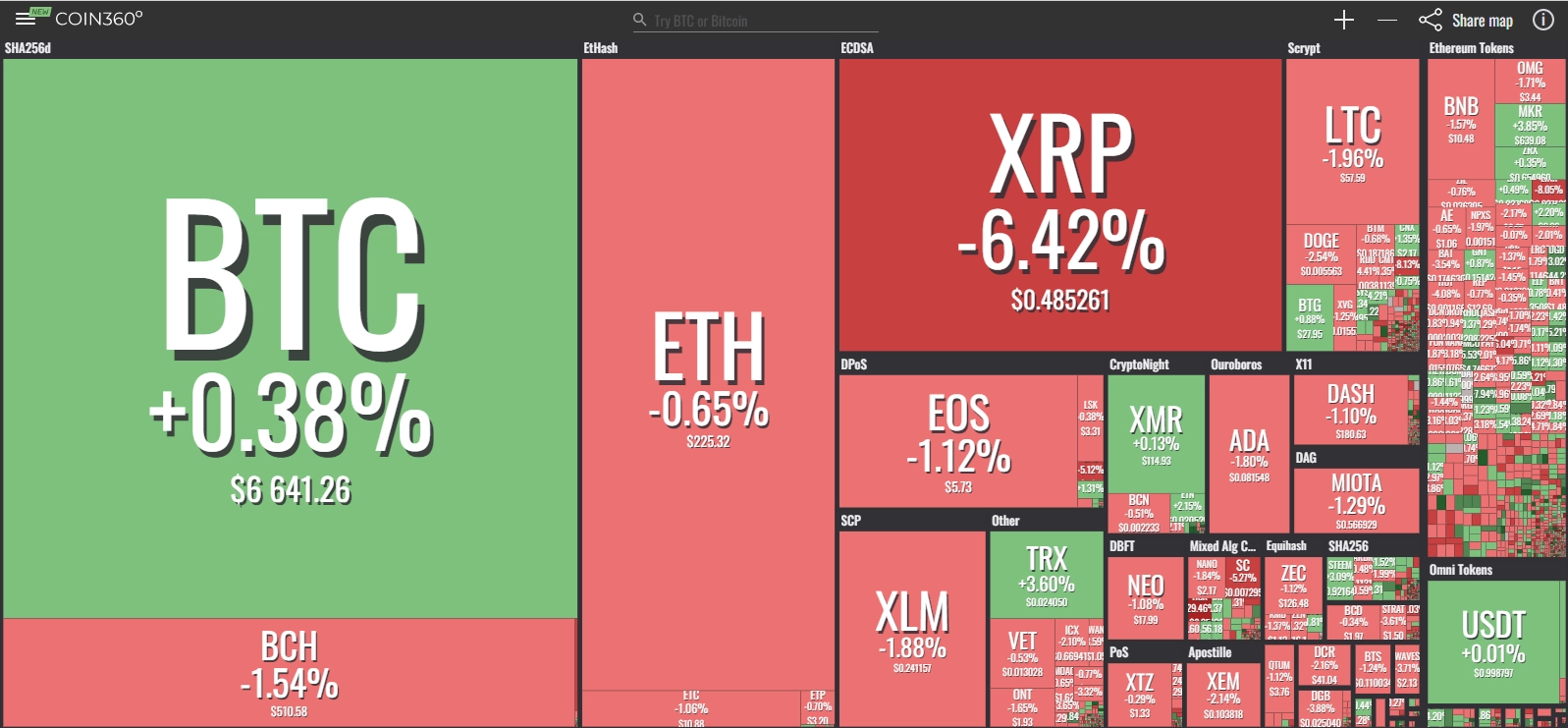 coinmarketcap(コインマーケットキャップ)のサイトから、ドミナンス(各銘柄が仮想通貨全体の時価総額に占めるパーセンテージ)を定点観測していきます。仮想通貨全般が下方向に大きく動き出している相場状況を受け、毎日更新することとし、仮想通貨業界を俯瞰および転換期を早期に発見することを目的とします。