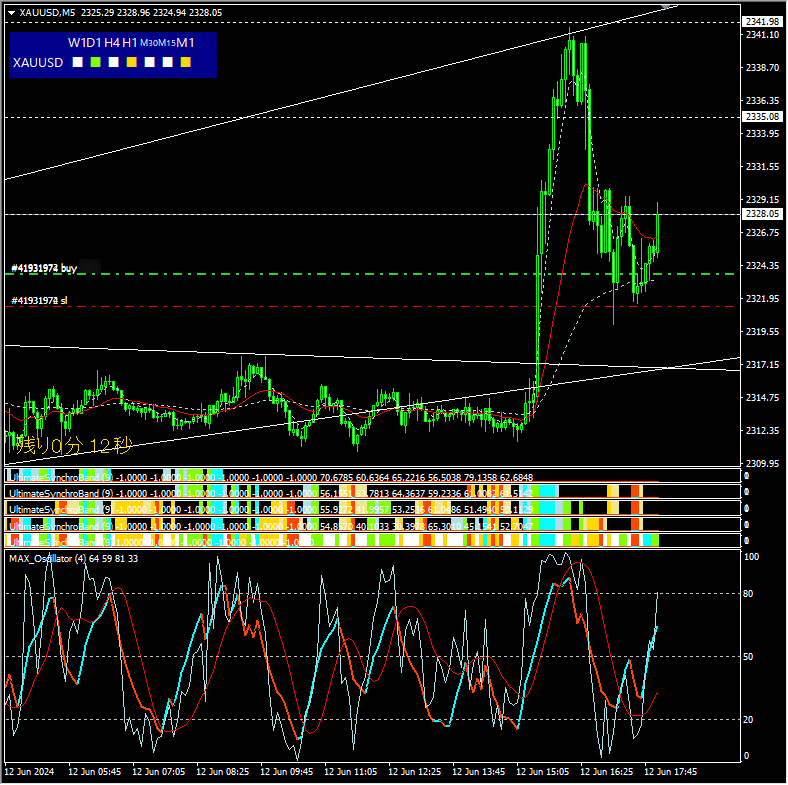 私は、①の、5分足の押しから、MAXオシレーター上方切り返し&上位足整合シンクロで、