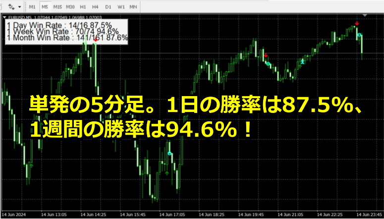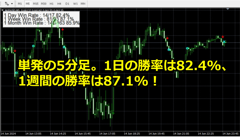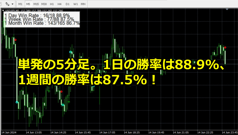 【6/15の実績】バイナリーオプションインジケーター。単発の勝率が80%以上の高勝率シグナル。