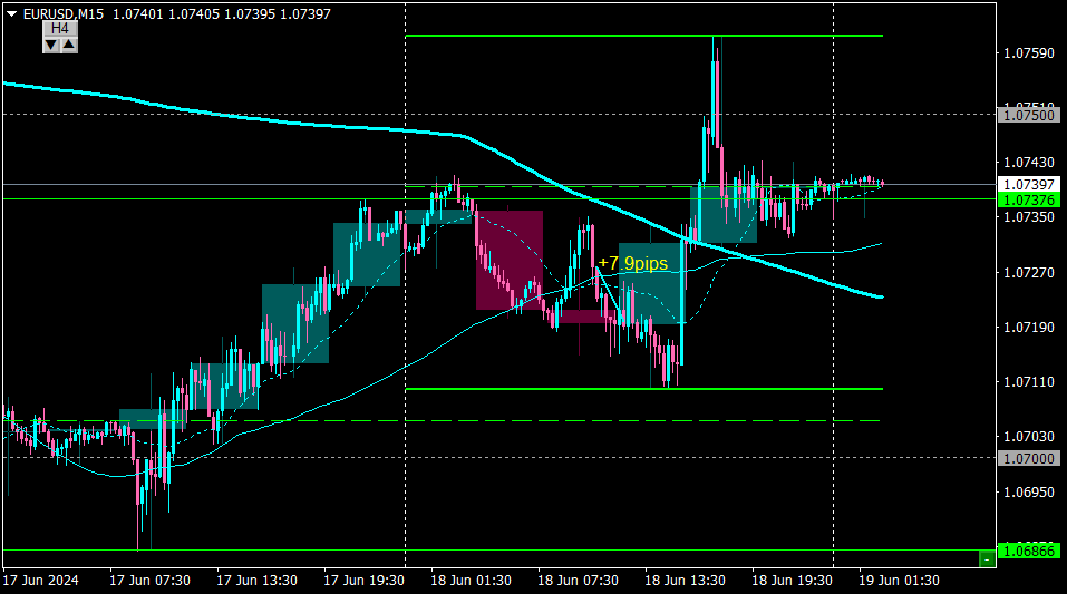 あまり下げることなく、M15の足で下ヒゲを何本か出し始めたのでイグジットした。+7.9pips