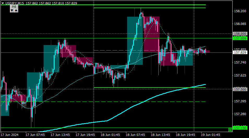 158.0の強いレジスタンスに近く値幅が取れなかったため。